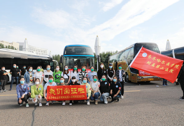 下午16时,我们集结完毕,齐医附属二院的领导和各科负责人前来为我们送行,并嘱咐我们一定要做好自身防护,期待我们的胜利凯旋。踏着夕阳西下的晚霞,伴着大巴车引擎的轰鸣声,心里默默的呐喊着:大庆,我来了!