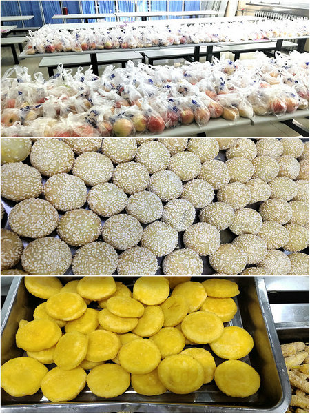 医院一直以来高度重视学生的教育,关注学生的衣食住行,在特殊的节日里,为了让学生们吃好,饮食服务中心还特别推出了特色特惠菜品,例如锅包肉、芝麻团、燕麦焗地瓜、南瓜饼,免费的蔬菜汤,赠送的月饼有五仁、椰蓉、枣泥等多种口味随意选择,让不能回家过节的学生感受到节日的温暖。