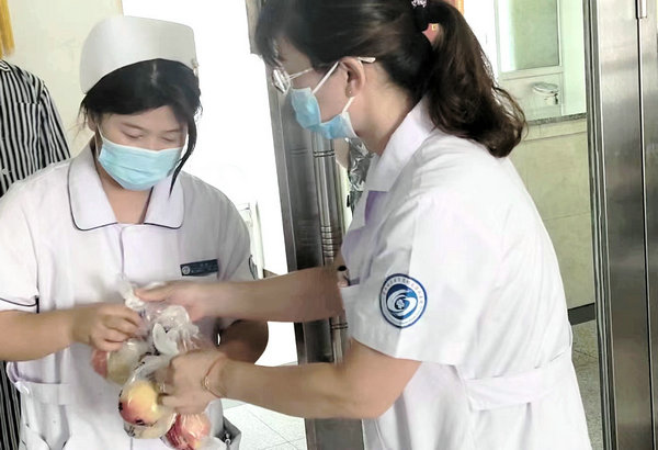 餐饮服务中心为病人及学生送上中秋月饼及水果