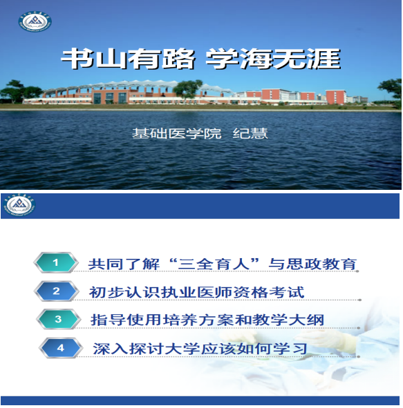 首先,纪院长和大家共同探讨“学习”这个充满生命力的词。明确了学习是一种能力,也应该是一种习惯,对于某些人来讲,学习可能像游戏或者跑步,不是必需的。但是作为医生,学习就像吃饭睡觉,是不可或缺的。我们要不停地汲取最新的医学知识和技能,才能更好地开展医疗服务。所以,从你选择成为一名医生的那一天,学习就与你如影随形。其次,纪院长分别从了解“三全育人”与思政教育;认识执业医师资格考试;指导学生使用培养方案和教学大纲;深入探讨大学生该如何学习这四个方面对学生进行了教育引导。最后,线上为同学们解答疑惑,帮助大家更好的适应大学生活,同时也再次送上自己对新生的美好祝福。