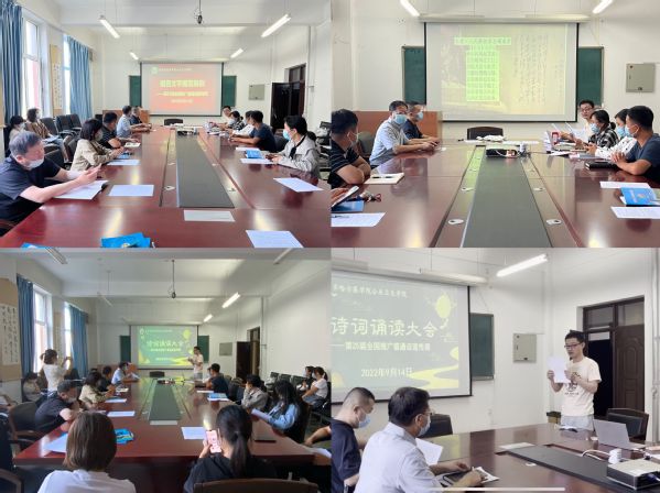 9月16日下午,公共卫生学院组织全体教职工开展了语言文字规范培训,培训中,办公室主任柴雪娇带领全院教师学习了《中华人民共和国国家通用语言文字法》。随后,学院开展了别开生面的经典诗词诵读会,李雯婷老师以一首《诗意中国》揭开了诵读会的序幕,娓娓道来的叙述向我们展示了一幅国泰民安、江山分外妖娆的中国诗意画。邱永强老师以毛泽东的一首《七律•人民解放军占领南京》将活动推向高潮,铿锵有力的朗诵歌颂了人民解放军飞渡长江天堑,解放南京,改造黑暗旧社会的光辉史实。