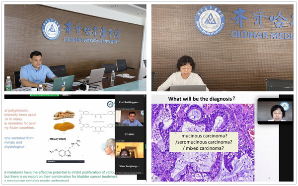 柏青杨教授以《卵巢浆黏液性肿瘤的病理诊断进展》为题,以分析具体病例为切入点,从病理学视角介绍了卵巢浆黏液性肿瘤的特征以及诊断方面的最新进展,为未来该领域研究提供了理论分析基础和依据。Sandeep Shrestha老师以《基于姜黄素抗肿瘤褪黑素增强机制的膀胱肿瘤研究》为题,对膀胱肿瘤的研究背景、治疗手段及诊断结果进行了系统全面的介绍,为膀胱肿瘤研究提供了新思路。