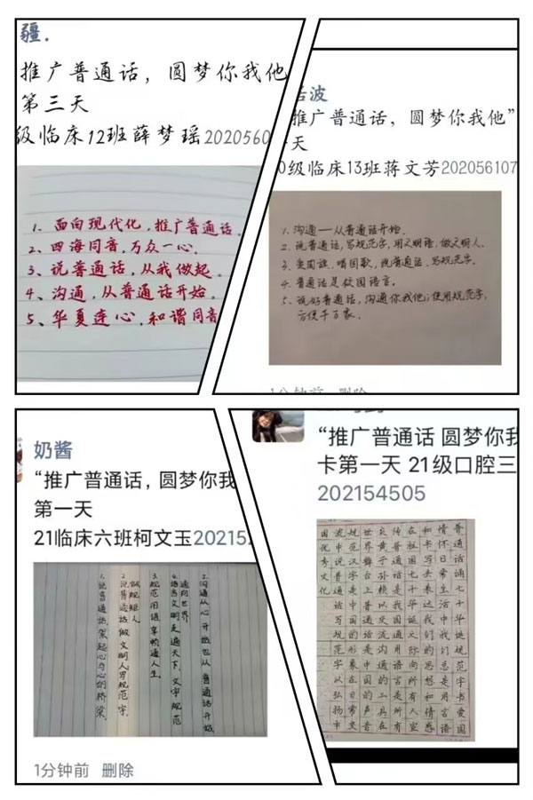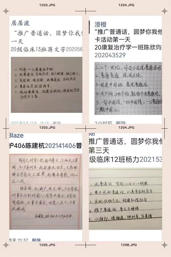 推普多元化,活动搭台。书法协会开展了为期三天的“手写推广普通话标语打卡”线上活动,同学们踊跃参加,用社交媒体宣传普通话,用文字图片展现普通话的魅力,帮助个人成长。校园网络电视台在认真学习全国语言文字会议精神和黑龙江省语言文字会议精神后,举办了“推广普通话,喜迎二十大”主题脱口秀大会,通过新颖的活动形式传递思考,凝聚青年正向力量,给青年以强大的信念感,帮助大学生更好地了解普通话,认识普通话,运用普通话。