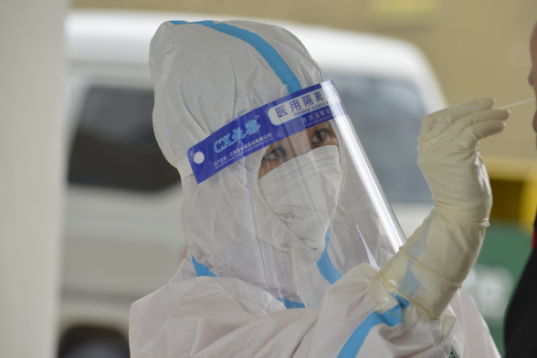 下午接到采集任务后,大家准时赶往疫区。我的任务是负责三个小区的采集任务。这里的居民楼比较老旧,没有电梯,楼道里也没有灯,只能靠志愿者手里的小手电透过的光来行走,每迈一步我都会非常的小心,因为我知道只有保证自己安全的前提下才能顺利完成交给我的任务,才能更好地服务于他人。一个小区采集下来,防护服里面的衣服都湿透了,面屏也已视物模糊,听见自己急促的呼吸让我第一次感觉憋闷感是这么的真实。从一个小区走到另一个小区需要10分钟的路程,风吹过来感受不到一丝丝的凉爽,到达下一个任务地点已经是晚上十一点多了,顾不上休息接着干,因为疫情紧急,须臾不能懈怠。与病魔较量,拼的是速度,争的是时间。不知道走了多少路,爬了多少台阶,流了多少汗,脸上和手上已经有了深深的勒痕,心中始终坚定一个信念:那就是万众一心迎挑战,众志成城战疫情!只要坚守信念就没有翻不过的山,没有跨不过去的坎。⿊暗终将过去,胜利的曙光在向我们招手,我们一定能战胜病毒,赢得胜利!也一定能共同守护好我们美丽的家园!黑河加油!