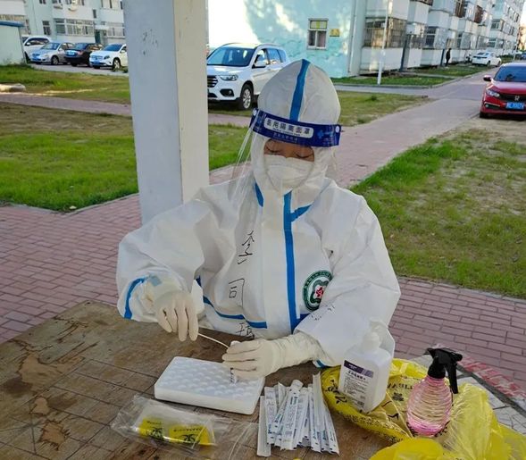 到大庆已经晚上八点多了,第二天早上四点就投入到工作中,我们主要的工作就是给失能老人入户核酸和扫楼采集,有的居民因隔离不能下楼;有的居民因失能不能下楼,我们就要爬楼去给他们做核酸,一栋楼下来,全身上下已经浑身湿透。穿防护服工作,每一个平时轻微的动作都会变得无比困难,上不来气,看不清东西已是常事,只能凭借丰富的经验和细致的观察来完成每一项工作,虽然很累,但是每当听到居民的感谢与赞扬,我的干劲更足了!