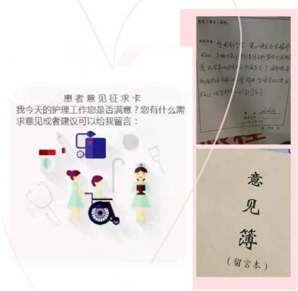 提倡住院全程倾听他们的心声,及时了解患者的需求和建议,并根据患者的需求不断地改进护理工作,血管外科制定了“病人需求、病人意见簿”充分了解每一位患者的需求,患者需要什么样的护理,血管外科就提供什么样的护理。 图片