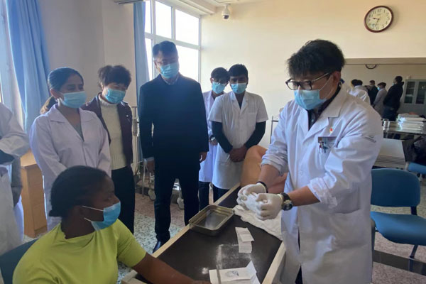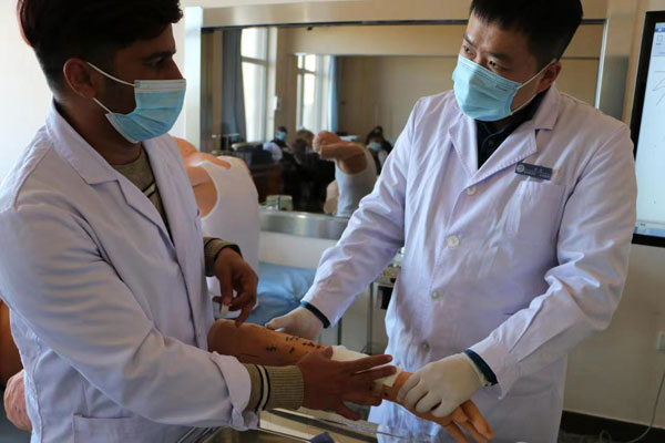 为推进学院留学生教学工作良好运行,提升在校留学生的临床实践能力,近期,国际教育学院对在校留学生进行了为期两周的临床技能培训。