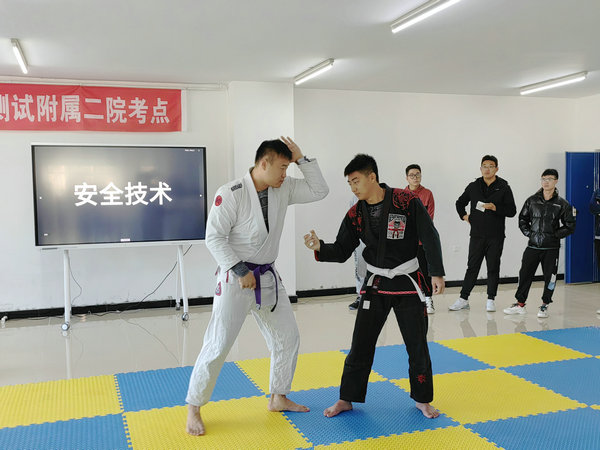 活动现场,副院长刘波莅临观看, 并鼓励同学们要提高自身防护能力,强调了树立安全意识的重要性。活动由巴西柔术紫带、国家二级散打运动员、国家一级散打裁判员于晓磊老师为大家亲自指导,并为在场同学介绍了防身术的基本要领,指导同学们进一步掌握在遭遇陌生人后抱、抓手臂、抓头发等多种恶意行为下应该使用的自救技巧。为期两天的培训中,同学们学习热情高涨,同时增强了安全防护意识,提高了自我保护能力。