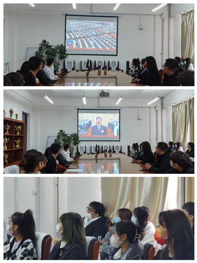 基础医学院组织师生通过多种形式收听收看二十大开幕会盛况,学院党政领导班子成员在图书行政楼1801会议室集中收看了大会开幕式直播。学院各党支部按照疫情防控要求,组织师生在会议室、办公室、教室、寝室、食堂等地线上线下分别收看了开幕式。师生认真聆听习近平总书记作的报告,纷纷热议,反响强烈。
