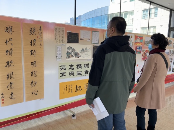 坚定理想信念,凝聚精神力量,根据《中共齐齐哈尔医学院附属第三医院委员会开展“喜迎二十大 奋进新征程”主题活动方案》的通知要求,为进一步推动医院文化建设,充分展现全院干部职工的良好精神风貌,营造积极健康向上的文化氛围,近日,我院党委组织举办的“喜迎二十大 奋进新征程”主题书画摄影展在住院综合楼二楼连廊展出。
