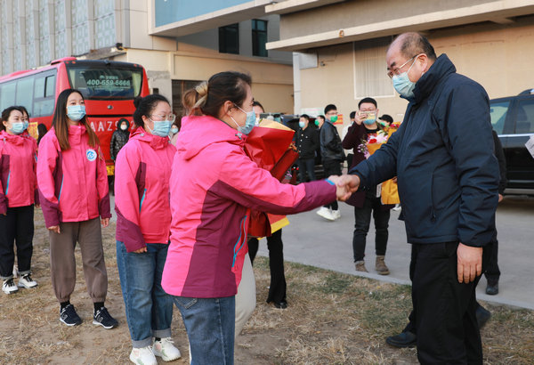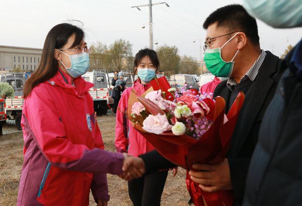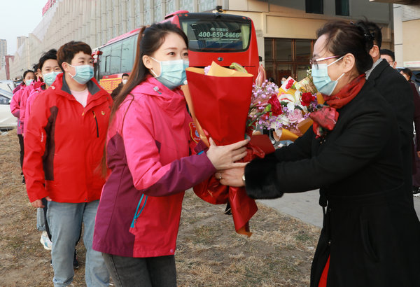 10月25日,齐医附属二院支援大庆、黑河核酸采集队20名白衣战士结束了支援任务,解除集中隔离医学观察后平安回家。院长党委副书记武立刚、副院长鲍红光、赵玉环、纪委书记李亚洲院领导班子、相关科室负责人、干部职工及家属前往集中隔离点热烈欢迎核酸采集队平安归来。