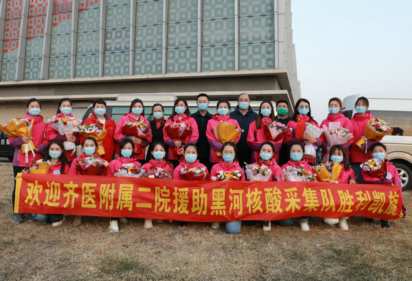 辗转两地、连续作战、勇敢无畏、无私奉献,齐医附属二院全体干部职工欢迎支援大庆、黑河核酸采集队员凯旋而归!