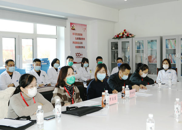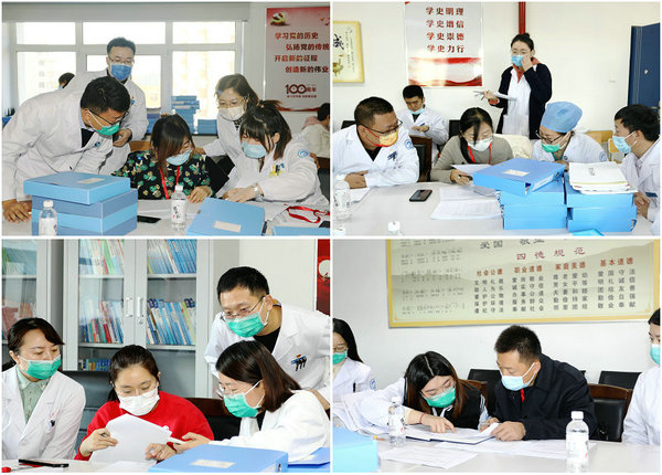 罗庆东院长主持会议,她就本次检查目的、内容、要求等进行了说明,检查组对医院住培基地进行现场综合评估检查。期间,督导专家通过各专业基地提供的原始材料,仔细研读,相互交流、根据出科情况访谈住培学员,根据科室提供资料深入核对带教教师教学活动开展情况,并指出其中不足。