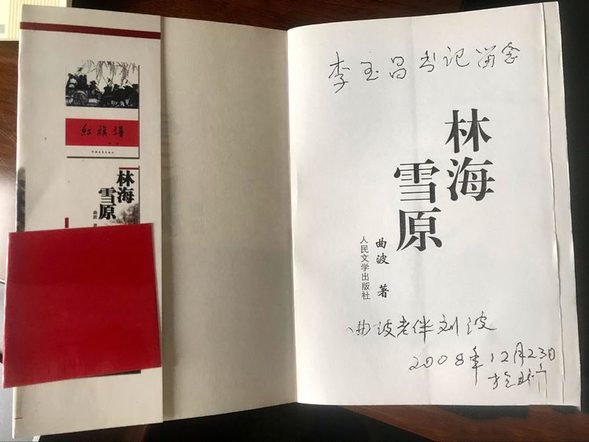 把其爱人曲波创作的《林海雪原》赠送给我们