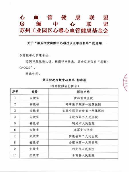 10月24日,中国房颤中心总部公布“第五批次中国房颤中心通过认证单位名单”,齐医附属二院光荣上榜,顺利通过认证,医院心血管疾病学科建设再上新高步入国家先进行列。