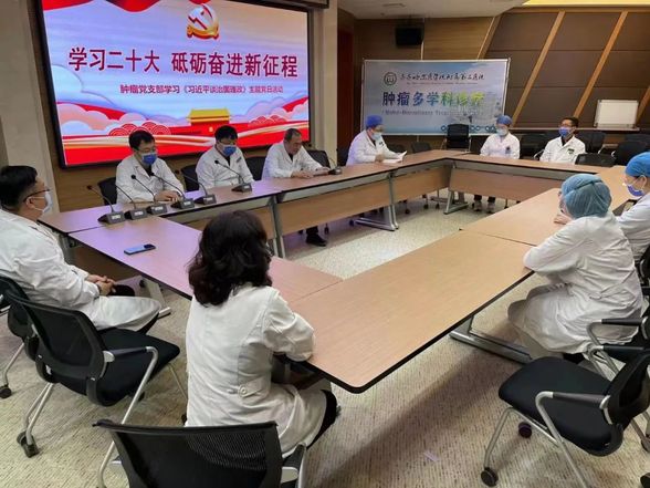 为深入开展“能力作风建设年”、“党员五带头 建功新时代”活动,近日,我院肿瘤党支部在住院综合楼三楼第四会议室开展了“学习二十大 砥砺奋进新征程”主题党日活动,支部书记邵学谦同志主持本次会议。