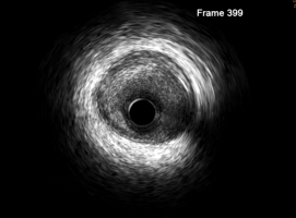 血管内超声(intravenous ultrasound,IVUS)是指无创性的超声技术和有创性的导管技术相结合,使用末端连接有超声探针的特殊导管进行的医学成像技术。血管内超声是通过心导管将微型化的超声换能器置入心血管腔内,显示心血管断面形态和(或)血流图形,主要包括超声显像技术和多普勒血流测定两方面。这种技术使得超声技术,如压电传导或者超声传感器得以用于检查血管内壁的情况。