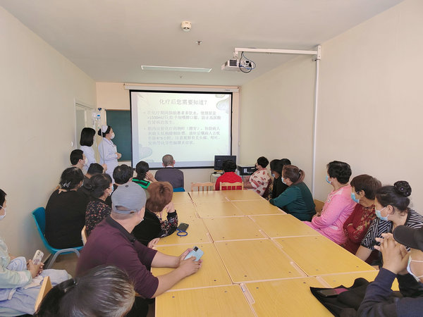 活动中,示教室座无虚席,许玲玲医生、王毓蕾护士分别为大家详细讲解了白血病的疾病知识、临床表现、化疗注意事项、白血病化疗后可能发生的不良反应及相应的处理、白血病患者化疗后的各项护理以及出院健康指导。并且针对平时在工作中所看到的问题与患者进行交流及沟通,提高患者对白血病的认识。