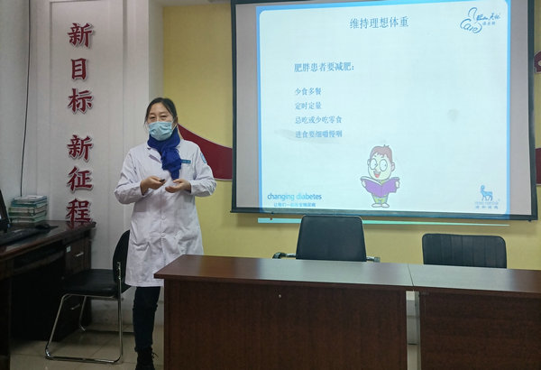 每年的11月14日为“联合国糖尿病日”,今年的主题是“教育保护明天”。在联合国糖尿病日即将到来之际,为响应世界卫生组织的号召,内分泌科一病区以线上、线下形式开展“联合国糖尿病日”系列宣传活动,对医联体中铧街道卫生服务中心医护人员进行糖尿病专业知识技能培训,同时为广大社会民众进行糖尿病健康知识讲座,科室还走进福顺小区开展“教育保护明天”为主题的义诊咨询活动,活动内容包括糖尿病筛查、义诊咨询、慰问贫困患者、健康管理等,从不同层面、角度、宣传普及了糖尿病防治知识,为提高广大群众的健康意识和保健水平起到了积极的推动作用。