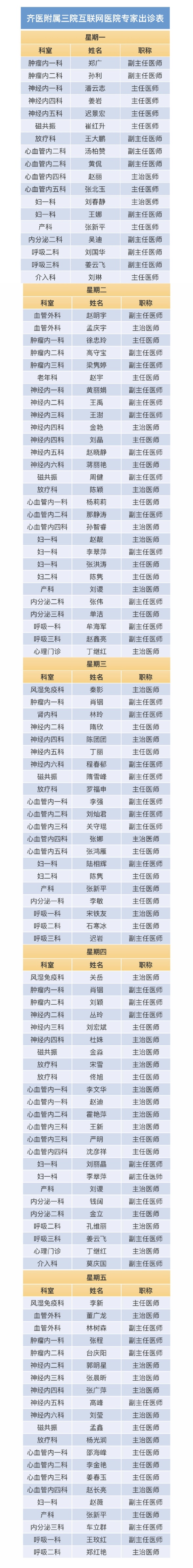 齐医附属三院互联网医院免费义诊专家出诊表图片