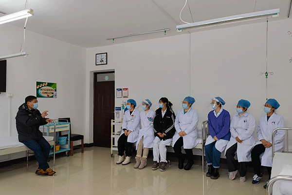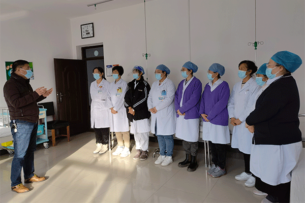 李春旭处长详细了解了当前卫生所的患者收治情况,医护人员的生活和健康状况,感谢大家在学院最紧急、最艰难的时刻挺身而出、主动请缨,全员驻校、坚守阵地,对大家彰显的自强不息、甘于奉献的齐医精神,以及大爱无疆、救死扶伤的医者仁心和职责担当表示钦佩。他强调,当前我市疫情形势极其严峻复杂,防控压力空前巨大,校内病毒隐匿及校外输入风险持续增加。在疫情防控的关键时期,希望大家持续坚定理想信念,时刻保持高度警醒,充分发挥卫生所的哨点和探头作用,以更加积极昂扬的斗志,做好打大仗、打硬仗、打久仗、打胜仗的准备。