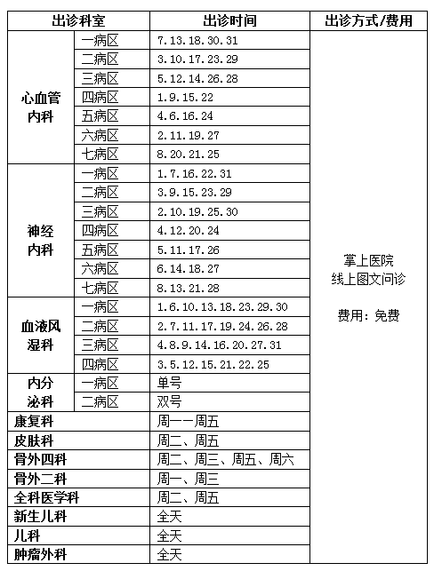 同心抗疫,守卫健康。为更好方便百姓就医,解决百姓健康问题,近日,齐医附属二院开通了免费掌上医院线上图文问诊服务,出诊安排如下: