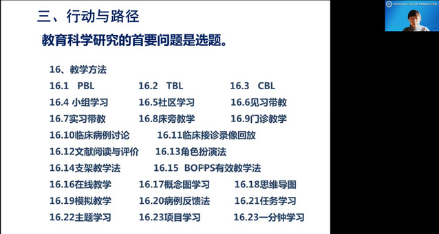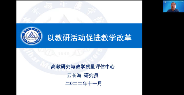 为了推进教学改革与创新,提升教育教学和人才培养质量,强化研究活动,促进各专业内涵式发展。12月4日,精神卫生学院联合附属第四医院举办了“教学改革与质量提升大讲堂”系列讲座的第一讲,本次讲座邀请了学校高教研究与教学质量评估中心主任云长海研究员进行线上讲座。精神卫生学院班子成员、各科室负责人、教师以及附属四院王文林副院长、各教研室主任、临床科主任和所有临床教师参加本次讲座。讲座由精神卫生学院孙正海副院长主持。