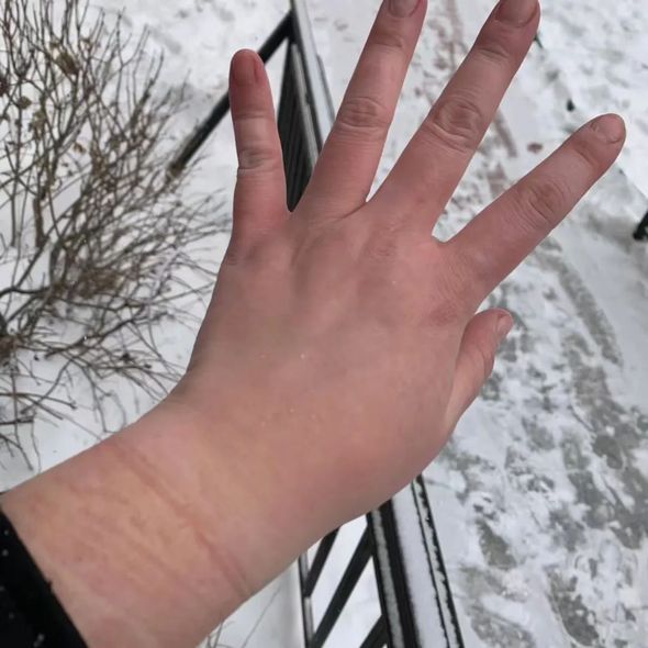 核酸采样队员被冻僵的手