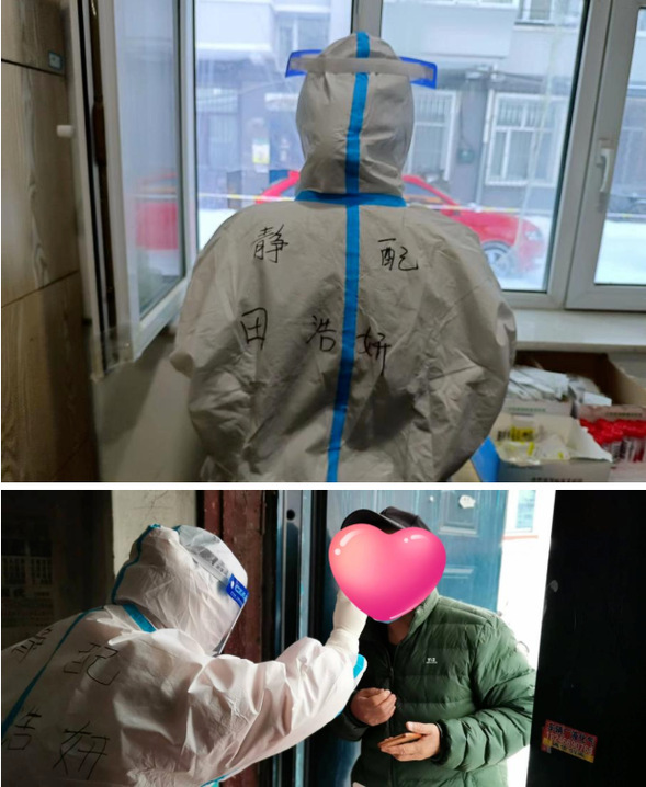 11月14日,田浩妍被安排在齐齐哈尔站开展核酸采集工作。当天由田浩妍和同事组成的两人小组在火车站采集旅客700余人,其中在检测结果中发现阳性病例,二人被告知成为密切接触人员,需在家中进行居家隔离。在居家隔离期间,我院领导对隔离的医护人员给予了极大的鼓励和帮助,安排了充分的生活物资。