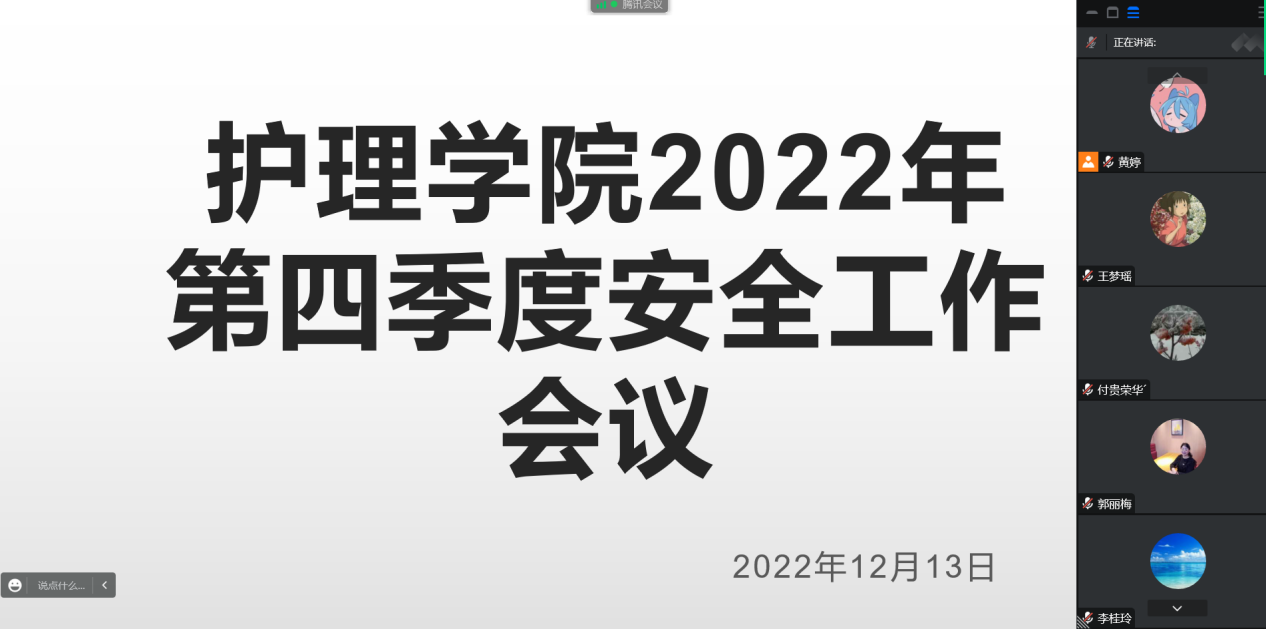 为贯彻落实上级关于加强安全工作重要部署要求及学院安全工作会议精神,切实做好各项安全工作,护理学院于12月13日下午召开护理学院第四季度安全工作会议,会议由护理学院副院长李桂玲主持,护理学院全体教职工参加会议。
