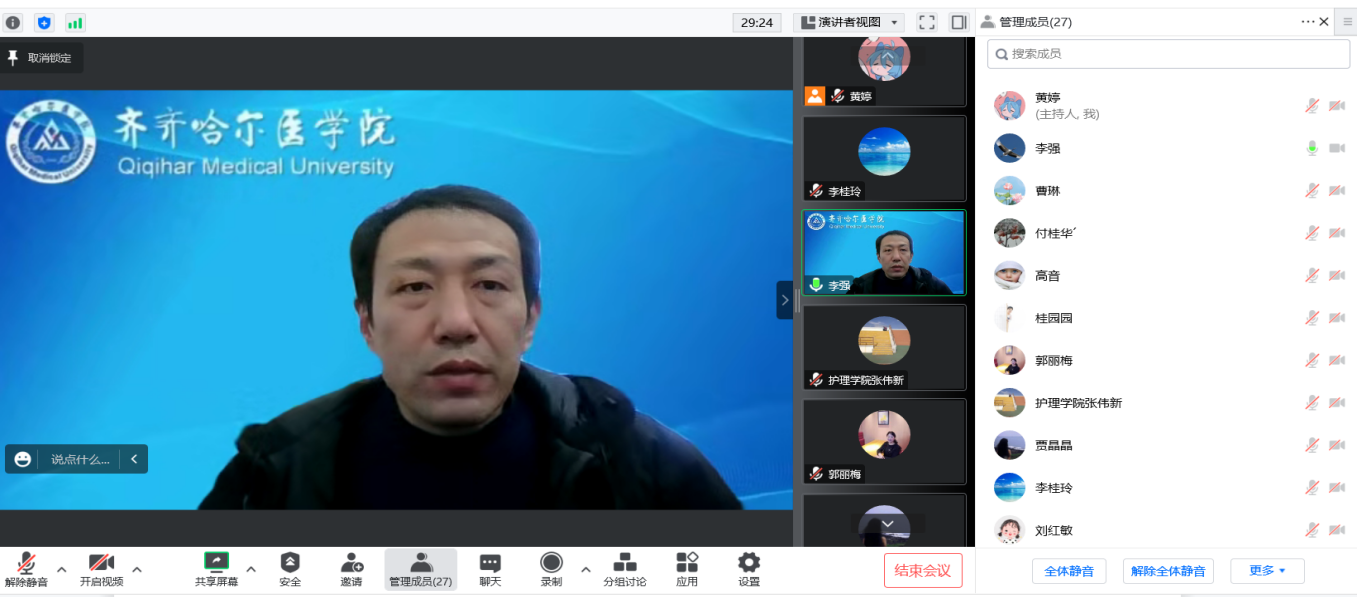 会上,李强书记传达了学院第四季度安全工作会议精神,带领大家学习了《学院2022年第三季度安全工作开展情况通报》《黑龙江省教育厅安全工作提示》《齐齐哈尔医学院扫黑除恶斗争专项整治工作方案》《齐齐哈尔医学院领导班子成员安全生产工作清单》《齐齐哈尔医学院交通安全整治排查工作方案》。他要求全体教职工要提高政治站位,压紧压实安全工作责任,完善应急预案,对突发情况提前做好应对准备,进一步提升校园安全治理能力,扎实做好校园安全各项工作,切实维护校园安全稳定。