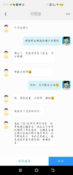 王永琴主任每次都认真查看患者提供的图片,倾听患者自行描述的症状,通过与患者的沟通和交流,凭借多年的临床经验,给出精准诊断和诊疗方案,指导用药,让患者足不出户在家就能解决了病痛及困扰。