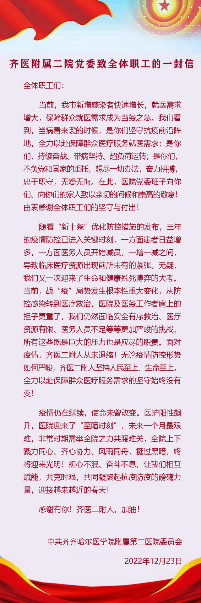 【附属二院】齐医附属二院党委致全体职工的一封信