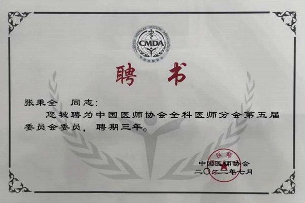 4、全科医学科主任张秉全教授当选中国医师协会全科医师分会委员。