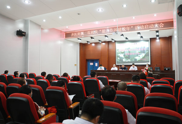 1、4月21日,齐医附属二院党委组织召开全院机关“能力作风建设年”活动启动大会,贯彻落实省委、医学院党委关于开展“能力作风建设年”活动的部署要求,动员全院机关干部躬身入局、实干担当,锐意进取、改革创新,力争在推动医院高质量发展中走在前、出重彩,以优异的成绩迎接建院50周年华诞和党的二十大胜利召开。