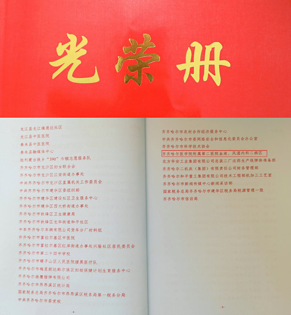 3、血液风湿科二病区荣获齐齐哈尔市“三八”红旗集体。