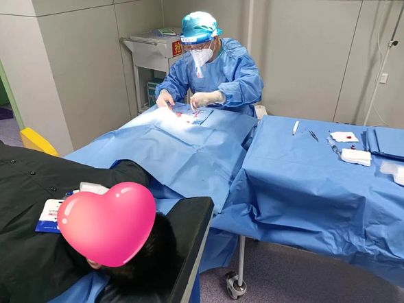 患者到达我院急诊外科之后,在询问患者病情及检查后,急诊外科主任郭金刚和医生杨威立即对患者的伤口进行清理。同时商讨治疗方案:一是皮外移植手术,二是伤口缝合。但由于患者伤口处剩余皮肤较少,外皮移植可能会出现愈合不良的情况,手指活动受限。郭金刚主任和医生杨威在商讨过后决定给予缝合处理,这样不会使手指活动受限,不影响患者正常生活,但所剩无几的皮肤想要缝合上也非常考验医生的技术。经过紧张的手术,两位医生以精湛的医术和严谨的态度完成了对患者伤口处的缝合,患者现在手部恢复良好。
