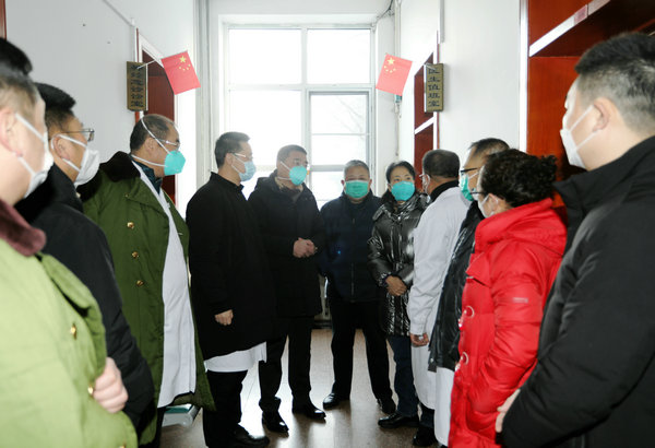 1月11日上午,齐医学院副院长、党委常委毕红霞、学院医院管理处处长李春旭、副处长韩俊岩一行三人莅临附属二院督导检查疫情防控和节前安全工作,并慰问坚守临床一线的工作人员,附属二院党委书记丁国旭、院长、党委副书记武立刚等全体领导班子成员及相关职能科室负责人陪同检查。