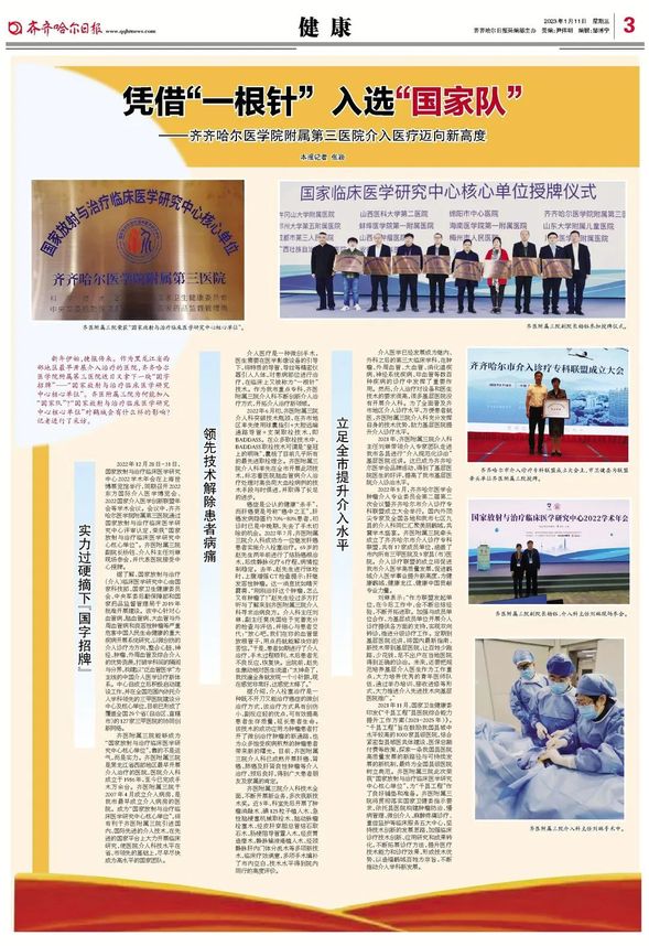 新年伊始,捷报传来。作为黑龙江省西部地区最早开展介入治疗的医院,齐齐哈尔医学院附属第三医院近日又拿下一块“国字招牌”——“国家放射与治疗临床医学研究中心核心单位”。齐医附属三院为何能加入“国家队”?“国家放射与治疗临床医学研究中心核心单位”对鹤城会有什么样的影响?记者进行了采访。