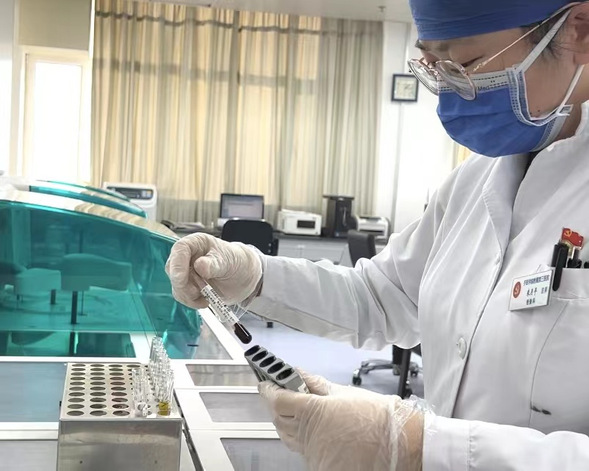 为了让就诊患者及时获得检验结果,检验科工作人员午休时间也在忙碌。