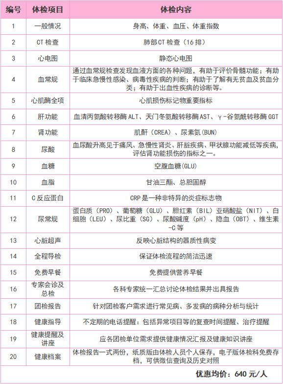 “阳康”体检套餐(A)