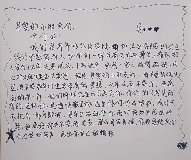 志愿者信中鼓励留守儿童