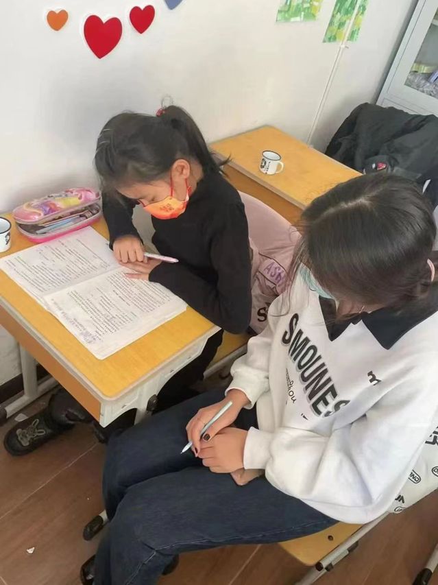 志愿者辅导孩子们功课