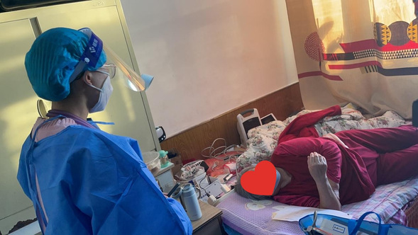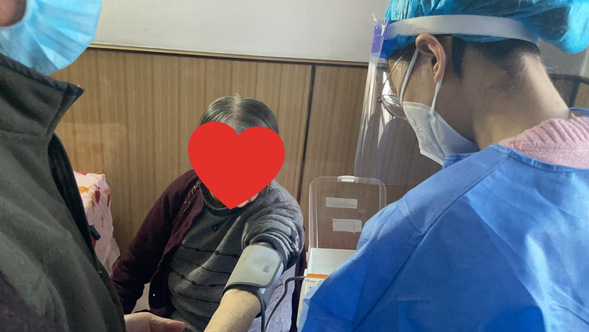 经医生认真查体后,患者状态尚可,只是说话上喘、气短、血氧低,心脏不好,肺部有炎症。护士严格执行无菌操作,为患者抽血拿回化验,对下一步治疗提供了有利的的参考依据。患者家属对中心的服务和医护人员的专业素养给予高度的评价,并表示由衷的感谢!老人更是激动,让家属扶她坐起来拽着医生的手,气喘吁吁的连声道谢。看起来很常见的画面,此时却让人感受到医患之间的真情传递!医生和护士带着这份肯定继续敲响了下一家,又下一家!