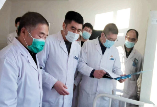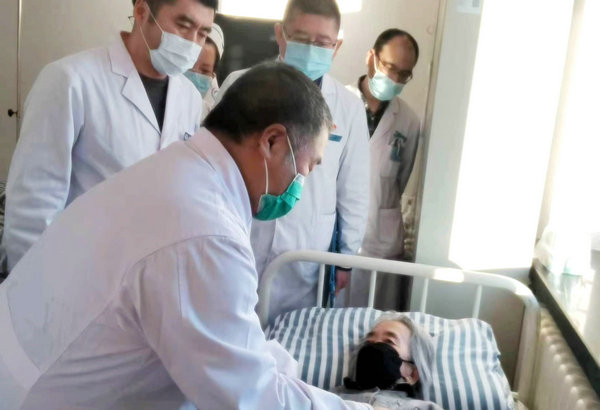 消化内科主任王文斌在进行体格检查