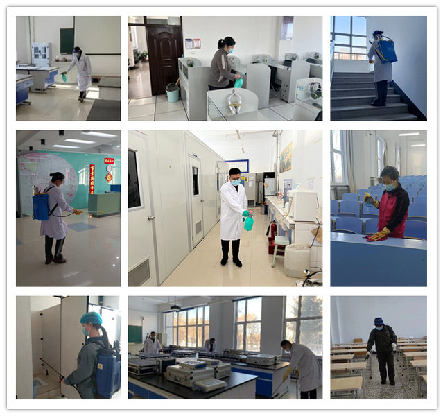 学院各相关单位保洁及消毒人员,以高度负责的态度,对校园公共区域、办公室、教室、实验室、图书馆、食堂、宿舍、浴池等人员密集场所和重点部位进行了全面清扫、科学规范消杀与通风,并对高频接触的门把手、楼梯扶手、电梯按键等部位进行了彻底消毒,确保不留死角,彻底阻断病毒传播途径,为师生身心健康和生命安全保驾护航。