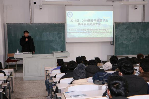 为提高留学生毕业生实习质量、帮助留学生更好适应实习医生的角色,2月27日,国际教育学院在教学主楼北区102教室召开了2017级、2018级春季班留学生实习前动员大会,并由国际教育学院院长王敬春、副院长许伟岚将留学生送至实习医院。