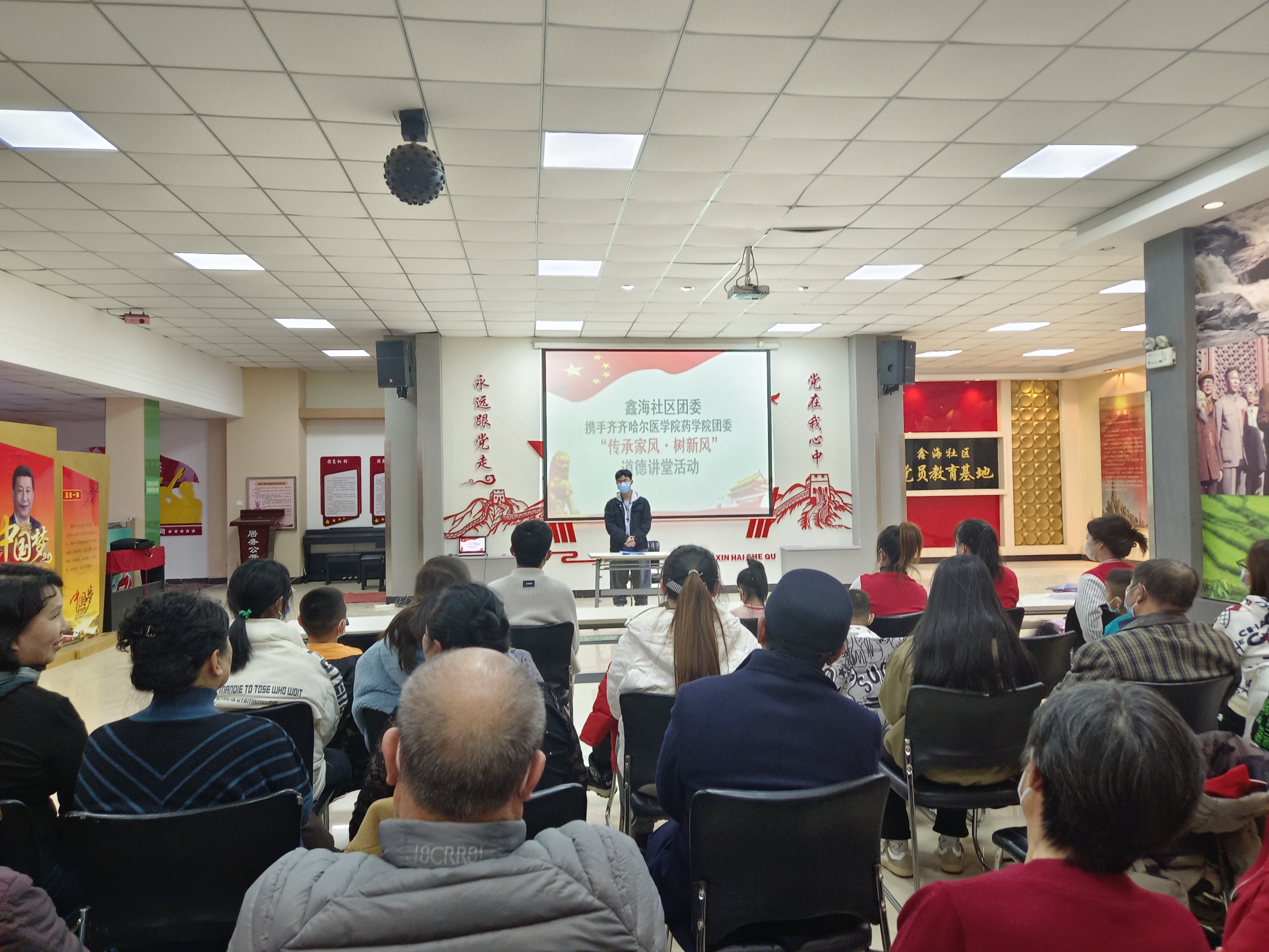 3月3日下午,药学院团委组织青年志愿者来到共建单位鑫海社区开展了“传承家风.树新风”道德讲堂活动及“学雷锋 办实事”春风行动环境整治共建美好家园志愿服务活动。