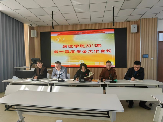 为贯彻落实齐齐哈尔医学院安全工作会议精神,推进病理学院各项工作安全稳定运行,3月8日上午,病理学院组织召开了2023年第一季度安全工作会议,会议由刘婷副院长主持,全体处科级干部及各部门秘书以上人员参加了会议。