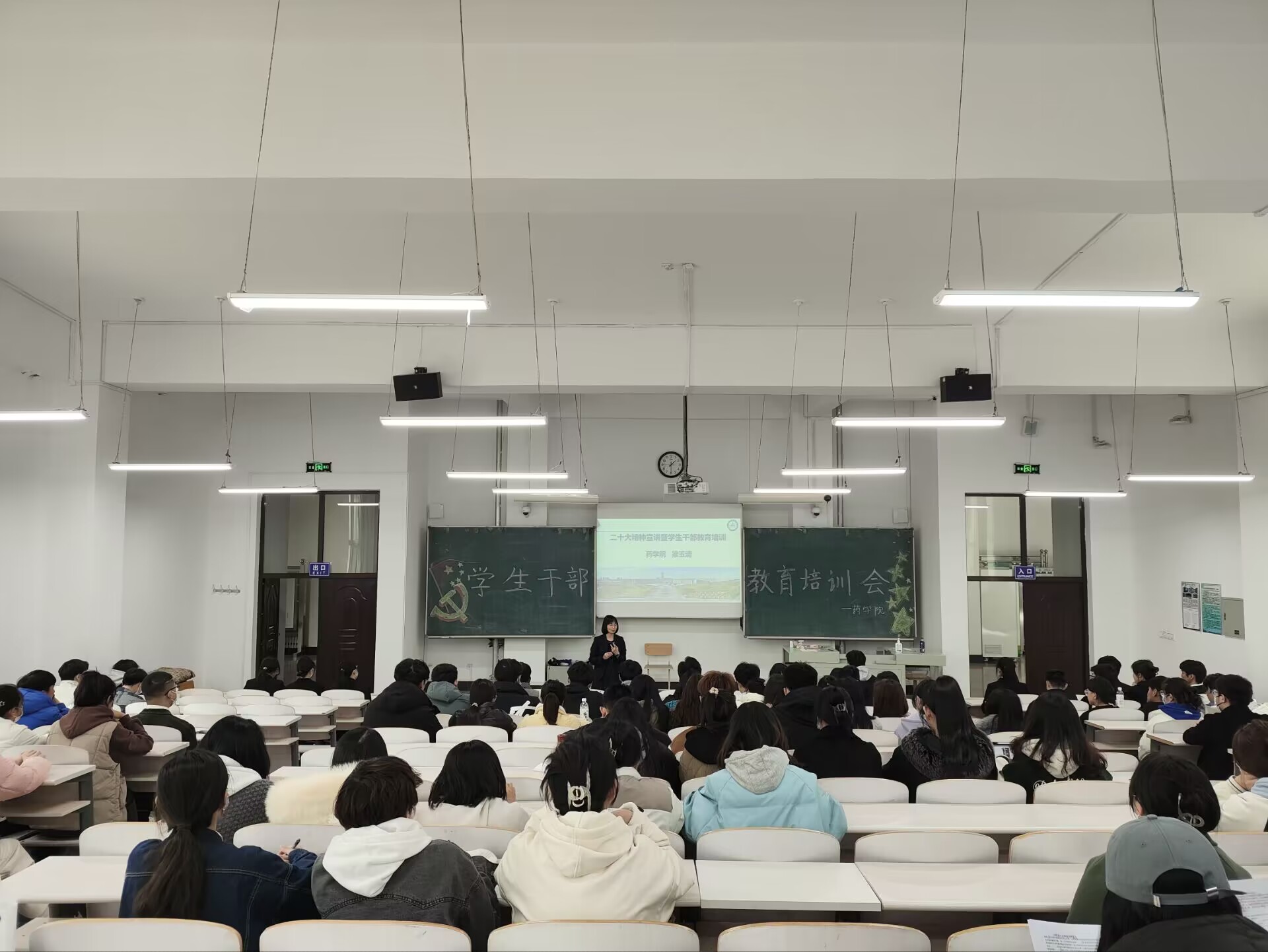 为学习宣传贯彻党的二十大精神,提高学生干部的综合素质,3月22日下午,药学院召开二十大精神宣讲暨学生干部教育培训大会。培训由学工办主任、团委书记梁玉清主讲,药学院团委、学生会、易班工作站、新媒体中心、创新创业协会及各班班长、团支书、学委等学生干部参加培训。